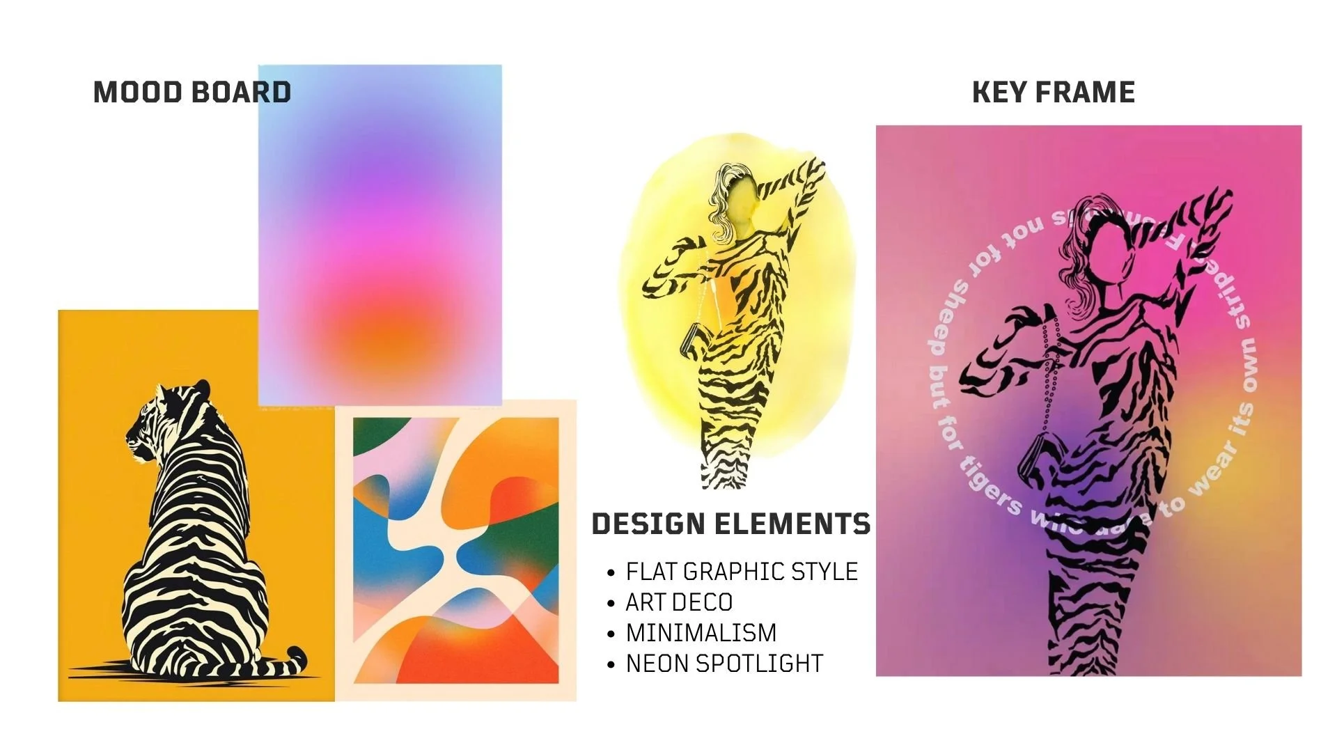 This work is a visual translation of wild instinct into rhythm and motion. This GIF captures the essence of a tiger—not as a static symbol of power, but as a living force in constant motion. Stripes pulse and distort like waves of muscle, echoing the animal’s velocity and primal elegance. The movement is hypnotic, fashion-forward, and visceral—where digital textile becomes an extension of the beast.